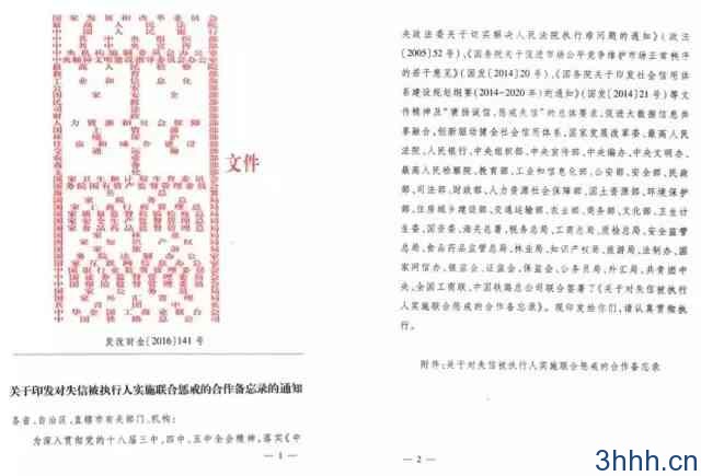 《关于印发对失信被执行人实施联合惩戒的合作备忘录的通知》(下称《备忘录》)
