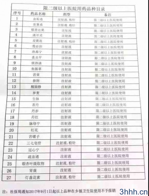 27种中药注射液限二级以上医院使用,