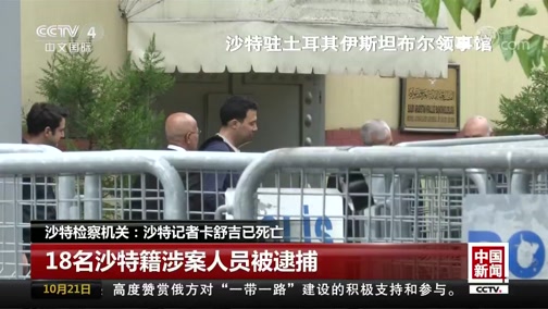 视频:沙特检察机关:卡舒吉因在领馆内与他人冲突死亡 来源:央视新闻 各方呼吁沙特政府进行最大程度透明的调查。英法德三国指出,“我们将根据沙特方面给出的解释值得信赖的程度,以及我们对于这种耻辱的事件不会再发生的相信程度,做出我们最终的结论。” 当地时间10月2日,担任美国《华盛顿邮报》评论员并在美国居住的沙特籍记者卡舒吉进入沙特驻土耳其伊斯坦布尔总领馆后失踪。 此前按沙特驻伊斯坦布尔总领馆的说法,卡舒吉是在离开总领馆后失踪的。 然而,沙特总检察长19日夜发表声明称,卡舒吉在沙特驻伊斯坦布尔领事馆中与人争吵并发生肢体冲突后死亡。 声明还指出,目前已因此案拘留18名沙特公民,沙特情报总局副局长艾哈迈德∙阿西里和皇家顾问卡赫塔尼被撤职。 2018年10月22日 09:49 来源:中国新闻网 英法德三国发联合声明 谴责谋杀沙特记者卡舒吉事件 http://www.chinanews.com/gj/2018/10-22/8656096.shtml