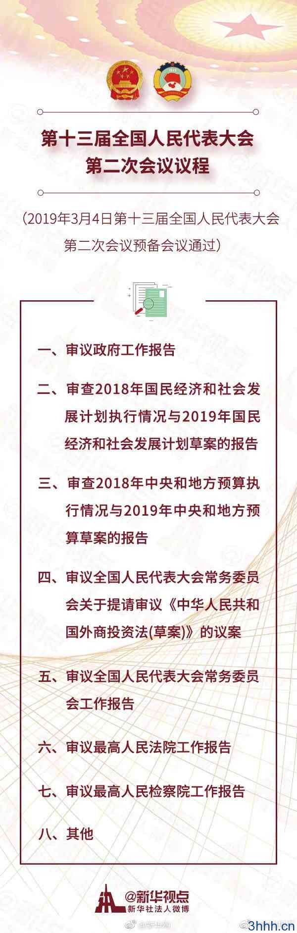 新华网 03.04 10:31 十三届全国人大二次会议议程出炉